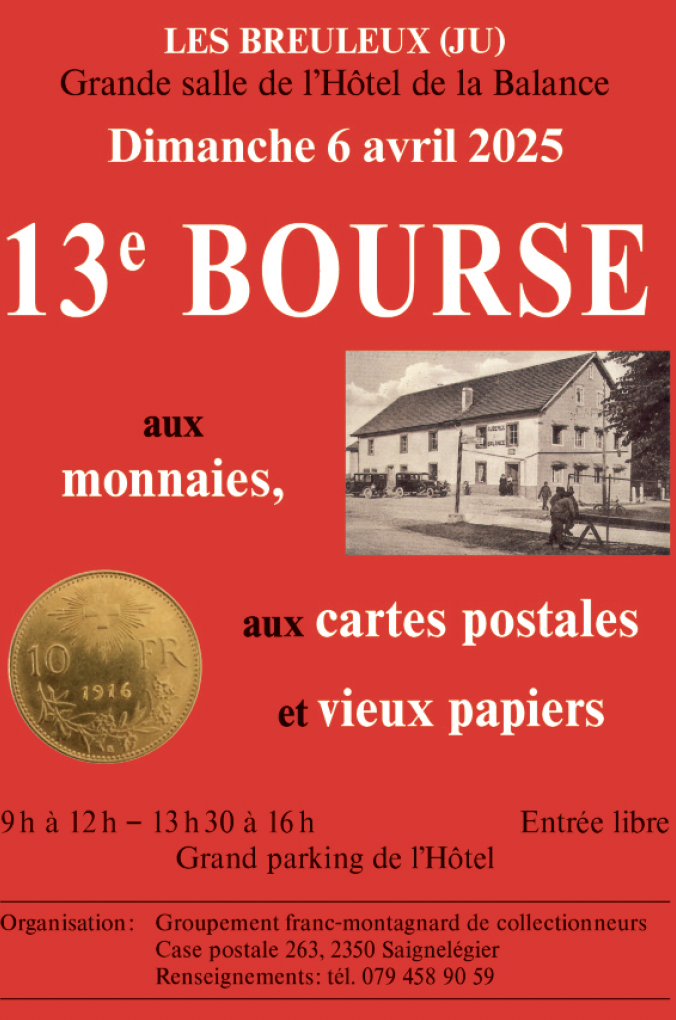 13e Bourse aux monnaies, cartes postales et vieux papiers (Les Breuleux)