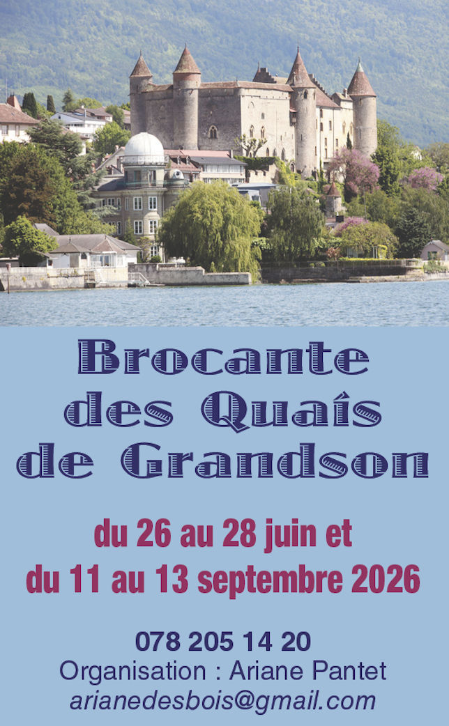Au bord du lac, près du port de Grandson la célèbre Brocante des Quais aura lieu 2 fois durant l’année. Les chineurs pourront y trouver des objets insolites ou autres perles rares à recycler.